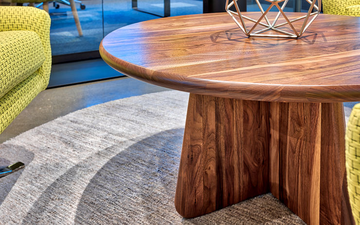 Unity's soft curves invites one to sit and enjoy the warmth of its complete solid wood design. This design illuminates the strength and beauty of wood from its top through its base. Unity’s design answered our challenge of how to reduce transportation carbon costs to the environment by the ability of flat packing, ease of assembly and disassembly, as well as reuse and refinish options. The base comes in two pieces that easily slide together and the top is simply bolted to the base. This creates an easy installation solution, which reduces costs to the end user.